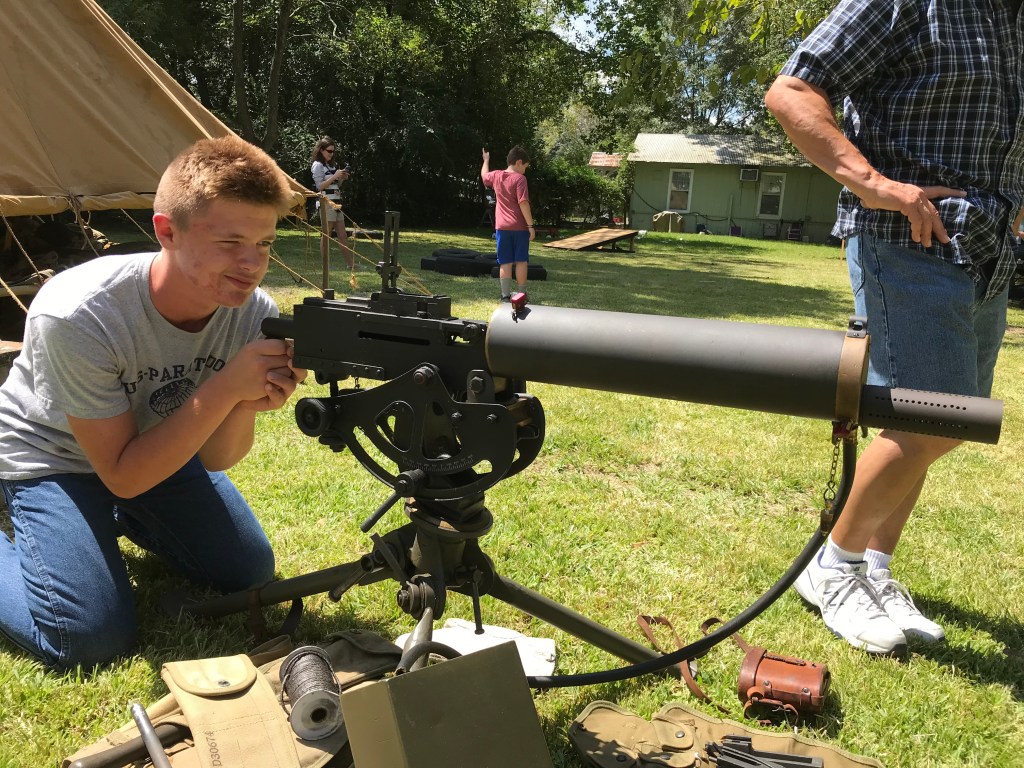 My brother, Ben, enjoyed peering through the sights of this machine gun.