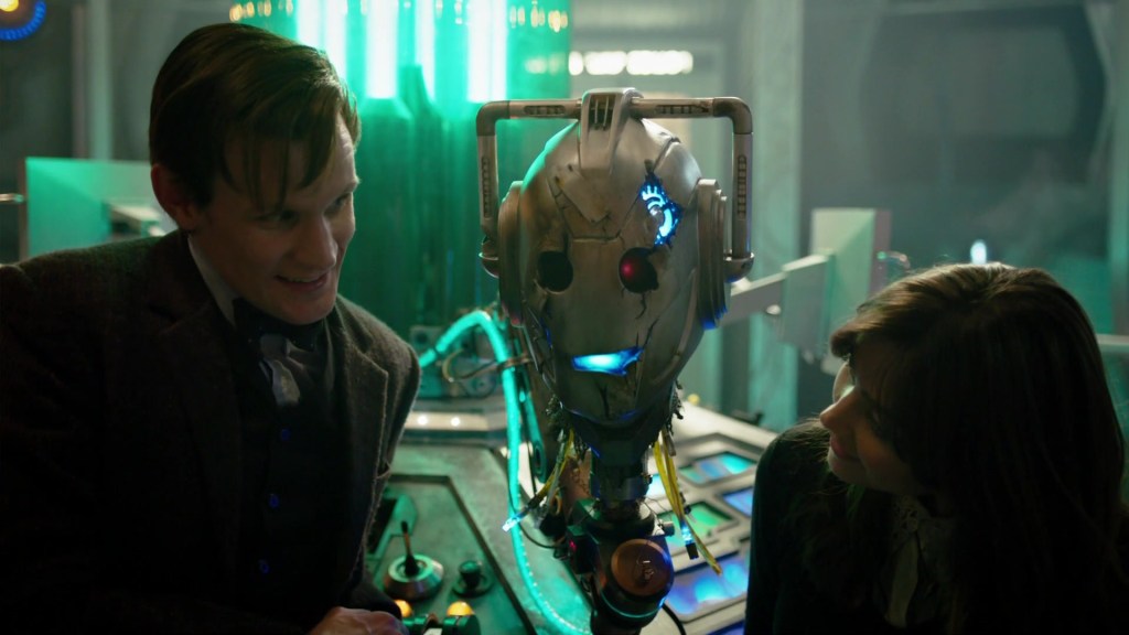 First Plot Point: Handles, the Doctor’s pet Cyberman head, identifies the mysterious planet as Gallifrey.